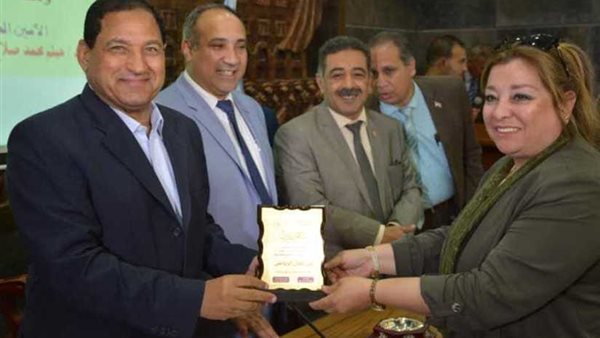 وفى نهاية الحفل أهدى الدكتور مجدي أبو فريخة درع نقابة المهن الرياضة للواء أحمد ضيف صقر محافظ الغربية لرعايته للرياضة والرياضيين للمحافظة.