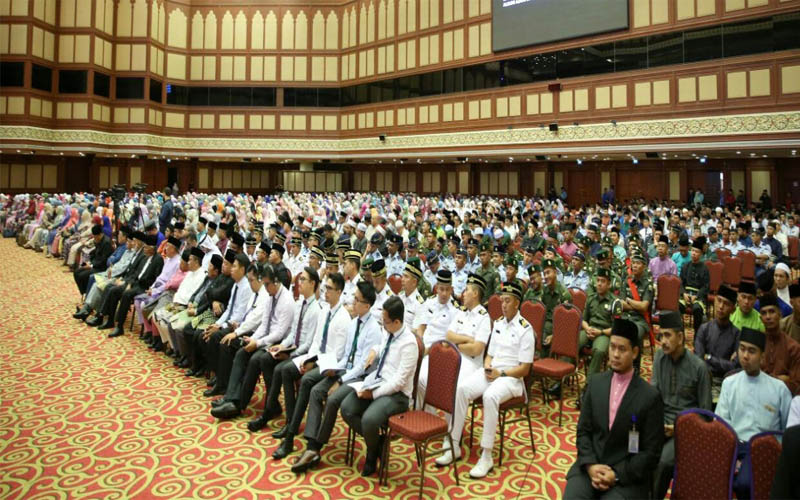 جاء هذا الإعلان في نهاية المحاضرة التي ألقاها فضيلة الإمام الأكبر، اليوم الاثنين، بعنوان "تحديات الأمة الإسلامية في مواجهة الإرهاب، بمركز المؤتمرات الدولي في سلطنة بروناي، وكان لافتا تواجد جميع وزراء الحكومة ونوابهم على المنصة الرئيسية للحفل، يتوسطهم فضيلة الإمام الأكبر، إضافة لحضور حاشد لكبار المسؤولين، وممثلين عن كافة الوزارات والهيئات وطلاب الجامعات.