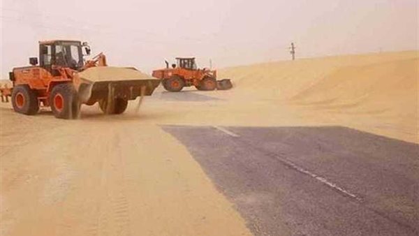 إزالة الكثبان الرملية من الطرق السريعة بالوادي الجديد
