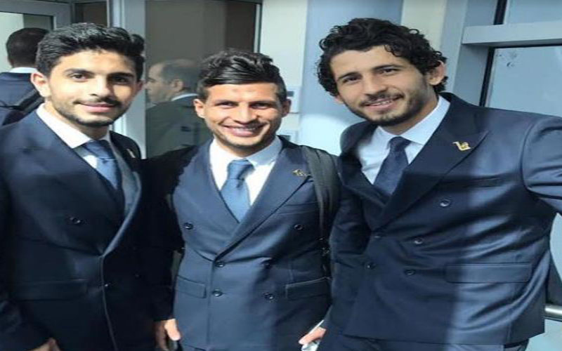 وظهر لاعبو المنتخب في الصور التي نشرها برنامج "8 الصبح" بشكل حصري، وهم يرتدون "بدلة رسمية"، وكوتشي أبيض اللون.