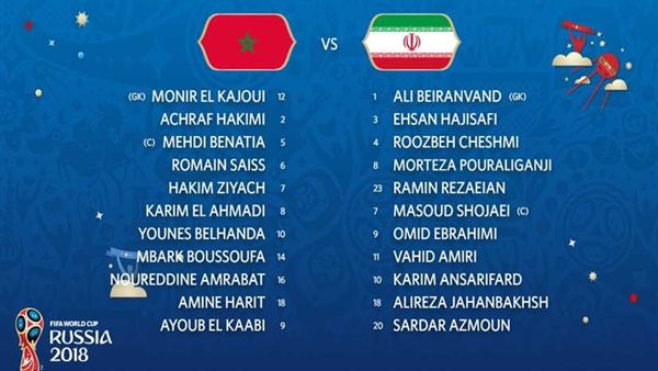 أعلن جهاز منتخبي المغرب وإيران، عن تشكيل المباراة التي ستنطلق في تمام الخامسة مساءً على ستاد كريستوفسكي، في أولى مباريات المجموعة الثانية والتي تضم المغرب وإيران والبرتغال وإسبانيا.