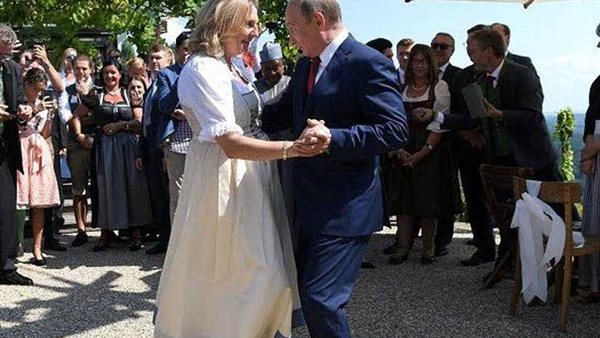 وظهرت الوزيرة كنايسل «53 عاما» في عدة صور وهي تبتسم مرتدية فستانا أبيض طويلا وتتحدث مع بوتين، أثناء رقصهما في الحفل الذي أقيم في إقليم ستيريا بجنوب النمسا في حين كان بوتين، يصغي باهتمام.
