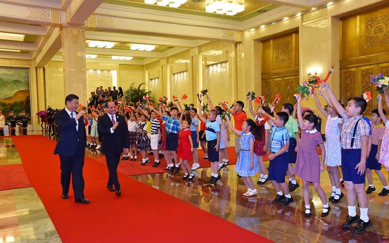 وأكد الرئيس الصيني أن مستوى التنسيق الجاري على المستوى السياسي بين البلدين فيما يخص عددا من الموضوعات الإقليمية والدولية ذات الاهتمام المشترك يعكس حرصهما على تعميق وتعزيز العلاقات الاستراتيجية بينهما..مرحبا بمشاركة الرئيس في قمة "منتدى التعاون الصين أفريقيا"، ومشيراً إلى ما تمثله مصر باعتبارها أحد أهم الدول الأفريقية فضلاً عن توليها رئاسة الاتحاد الأفريقى خلال عام 2019 وهو ما يدفع بأهمية استمرار التنسيق والتشاور عالى المستوي القائم بين البلدين للعمل على تطوير العلاقات مع القارة الأفريقية والتي تحظى باهتمام بالغ من جانب الصين خاصة مع إطلاق الصين لمبادرة "الحزام والطريق" لتعزيز التعاون والتكامل بين آسيا وأوروبا والشرق الأوسط وأفريقيا، وتعزيز الربط بين تلك الدول لدفع التبادل التجاري بينها.