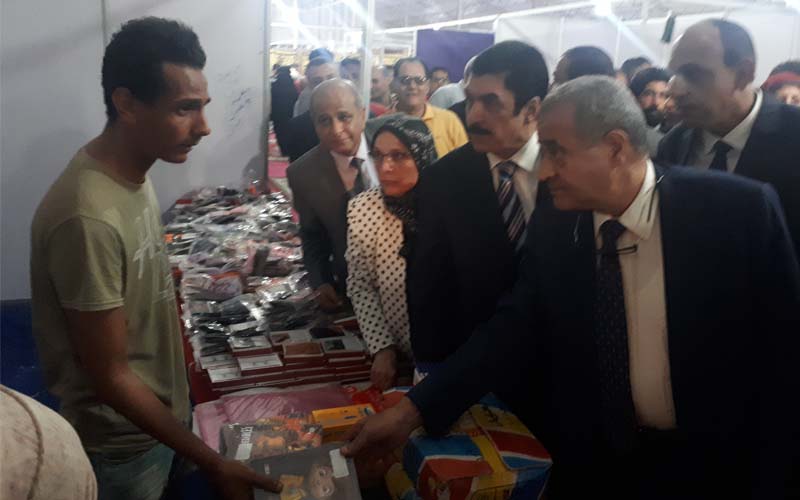 وتفقد وزير التموين يرافقه المحافظ، عدد من الأجنحة بالمعرض شملت مستلزمات مدارس وجامعات وملابس واغذية.