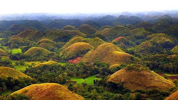 أحد عجائب الطبيعة! تلال مخروطية الشكل متراصة بجانب بعضها في تناسق غريب تقع في جزيرة بوهول في الفلبين، تتكون من 1.270 من التلال على مساحة 50 كم مربع! ظاهرة طبيعية تعود لآلاف السنين دون تدخل من الإنسان.