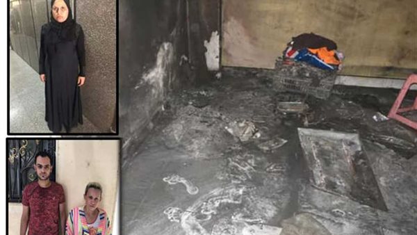 وتمكنت الأجهزة الأمنية من ضبط الأخيرة بمسكن زوجها "حسان. ع"، مزارع - مُقيم بشبرامنت بالجيزة ، وأنها متزوجه منه منذ خمس سنوات، ومنذ حوالى شهر تعرفت على سها من خلال ترددها على أحد الملاهي الليلية بمنطقة الطالبية، وأقامت رفقتها وأطفالها الثلاثة (محمد حسان – يبلغ من العمر 5 سنوات، أسامة حسان - يبلغ من العمر 4 سنوات، فارس - يبلغ من العمر عامين وغير مُقيد بسجلات الأحوال المدنية) ومساء يوم الحادث توجهت سها إلى أحد الفنادق الكائنة بشارع الهرم، ولدى عودتهما الساعة 6 صباحاً للشقة اكتشفتا حدوث حريق بإحدى الغرف ووفاة الأطفال الثلاثة فقامتا بوضعهم داخل الأكياس والسجادة والتخلي عنهم بمكان العثور.