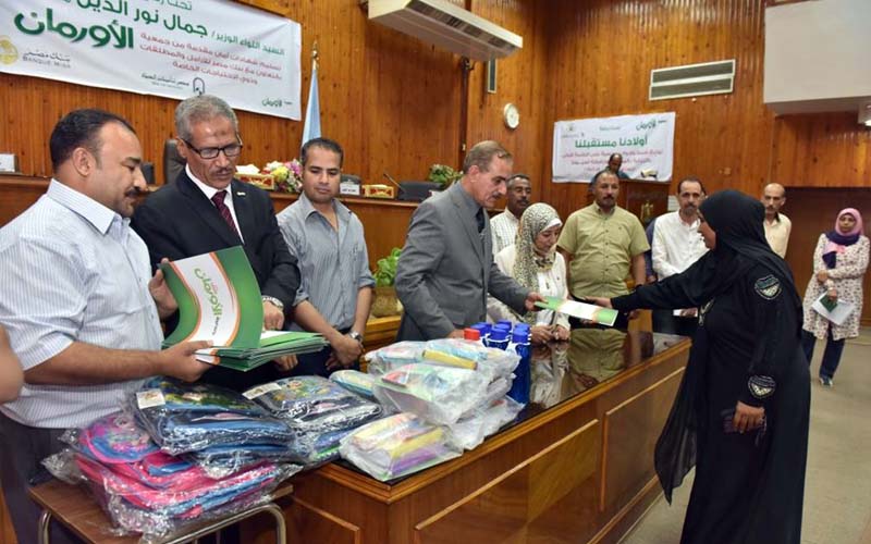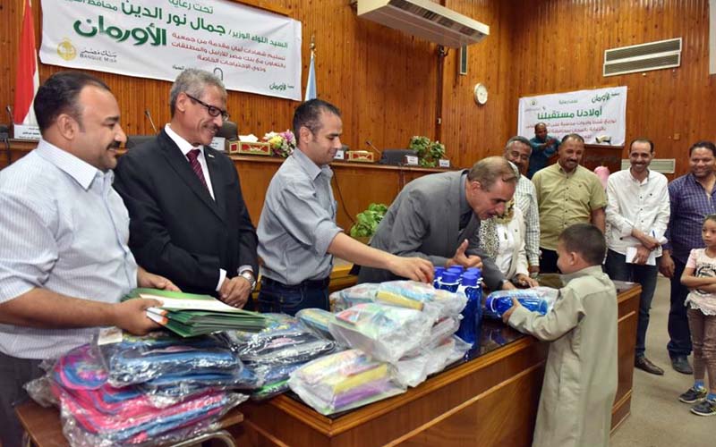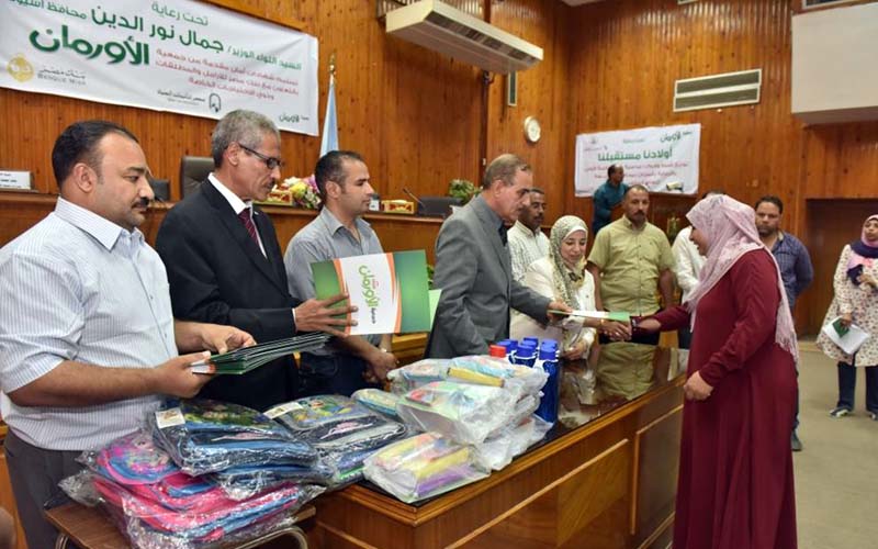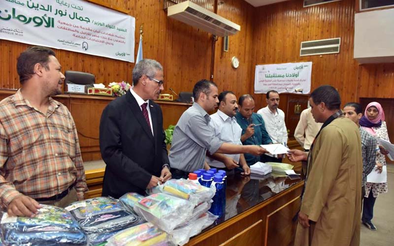 شهد اللواء جمال نور الدين محافظ أسيوط اليوم الاثنين حفل توزيع عدد 500 شنطة مدرسية على الطلبة الاولى بالرعاية و200 شهادة أمان على بعض الاسر والفئات الاولى بالرعاية بقرى ومراكز المحافظة بالتعاون مع جمعية الاورمان وفرع بنك مصر بأسيوط ومديرية التضامن الاجتماعى وتحت إشراف هيئة الرقابة الادارية لتوفير الحماية للمرأة المعيلة وتقديم المساعدة للاطفال الاولى بالرعاية.