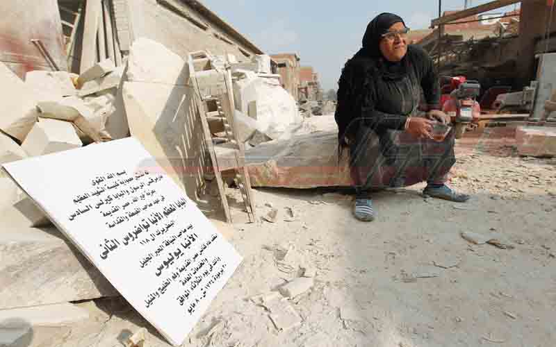 الحاجة "أم أحمد"، واحدة من هؤلاء المصريات البسطاء، تعمل في نحت وصناعة تماثيل قبطية وإسلامية، بمساعدة نجليها محمود وأحمد.