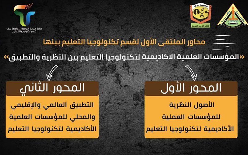 تنظم كلية التربية النوعية ببنها، الملتقى العلمي الأول لقسم تكنولوجيا التعليم في الرابع والعشرين من فبراير القادم برعاية الدكتور حسين المغربي، رئيس جامعة بنها، والدكتور محمد إبراهيم عبد الحميد، ويحمل الملتقى عنوان "المؤسسات العلمية الأكاديمية لتكنولوجيا التعليم بين النظرية والتطبيق".