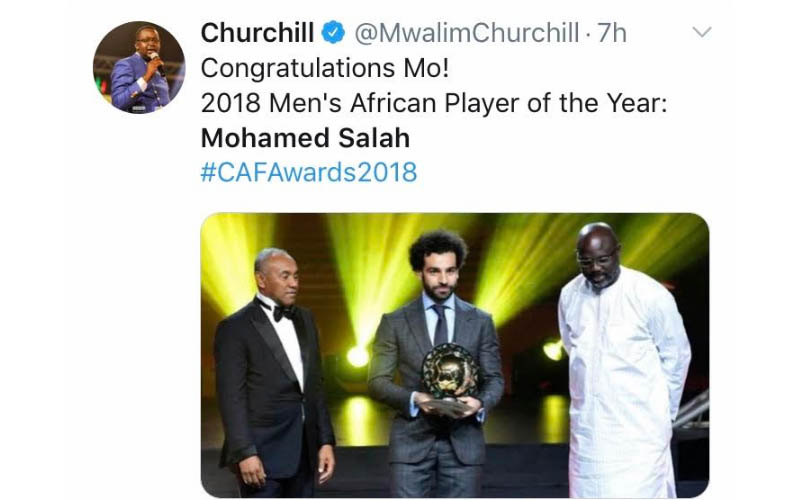 كما حرص المغردون على تهنئئة صلاح لفوزه للمرة الثانية على التوالي بأفضل لاعب بأفريقيا .