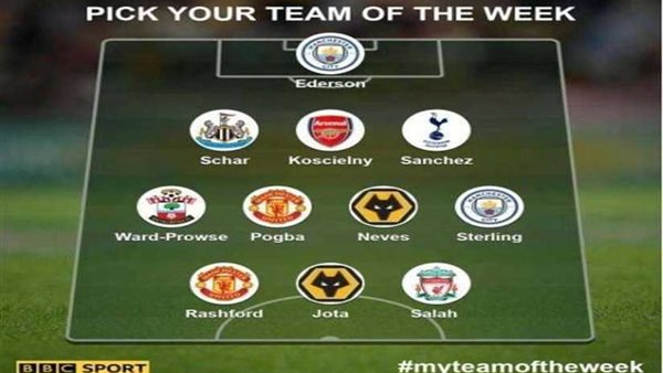 خط الهجوم: محمد صلاح (ليفربول) ديوجو جوتا (وولفرهامبتون)، راشفورد (مان يونايتد).