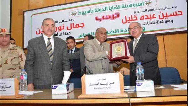 تبادل الدكتور طارق الجمال رئيس جامعة أسيوط، والمستشار حسين عبده خليل، رئيس هيئة قضايا الدولة، والمستشار أحمد محمد خليفة، رئيس نادي قضايا الدولة، الدروع التذكارية وذلك خلال الملتقى الذي نظمته الهيئة في رحاب جامعة أسيوط تحت عنوان "هيئة قضايا الدولة ودورها الدستوري في الحفاظ على المال العام" وذلك على هامش زيارته إلى محافظة أسيوط لوضع حجر أساس نادي مستشاري الهيئة بمدينة أسيوط الجديدة وافتتاح مقر الهيئة بمركز منفلوط.