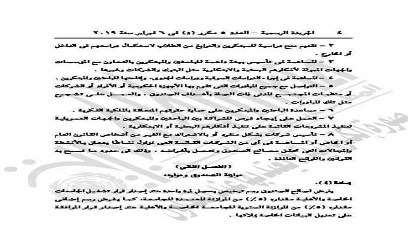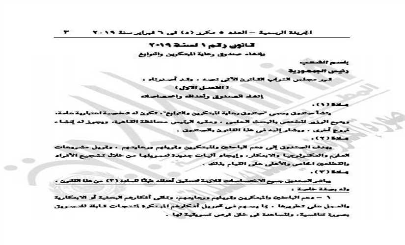 أصدر الرئيس عبد الفتاح السيسي القانون رقم واحد لسنة 2019 بإنشاء صندوق رعاية المبتكرين والنوابغ.