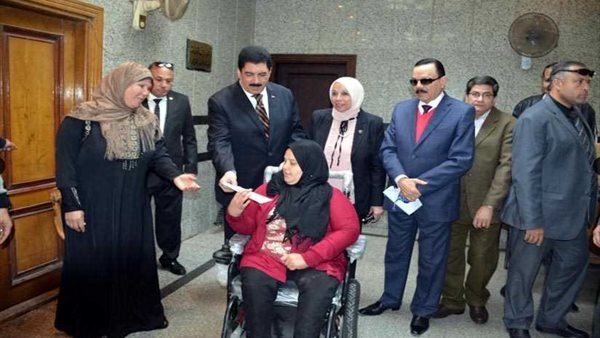 محافظ القليوبية يسلم كرسي كهربائي متحرك لطالبة تعاني من ضمور بالعضلات