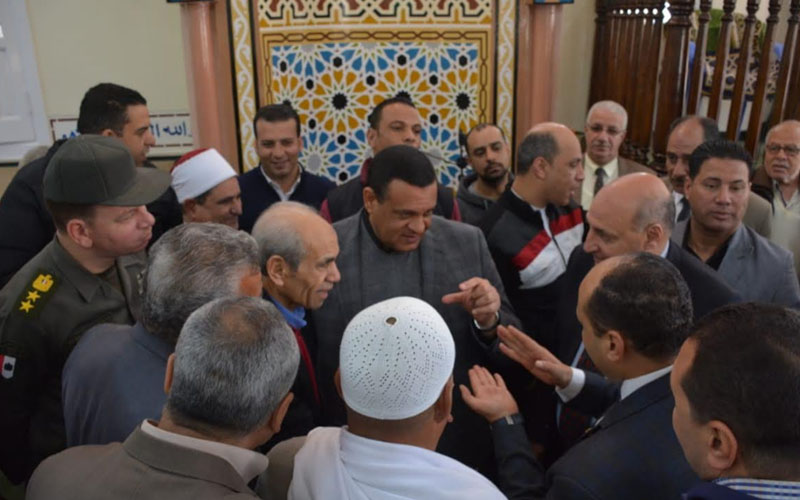 وعقب انتهاء الصلاة التقى المحافظ بعدد من المصلين وأهالي المنطقة واستمع منهم عن أهم مطالبهم واحتياجاتهم التى تمس حياتهم اليومية من القطاعات الخدمية والمرافق ووعدهم على العمل على دراستها وايجاد حلول سريعه لها.