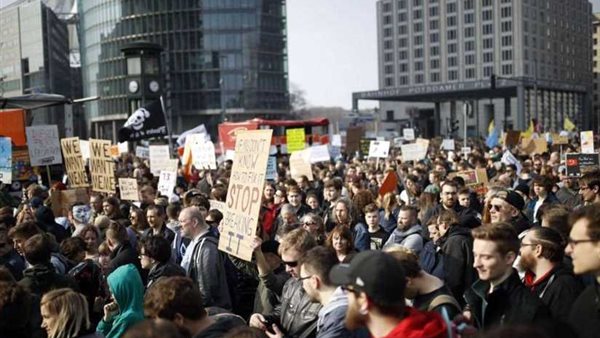 تظاهر عشرات الآلاف في ألمانيا، احتجاجا على إصلاح قانوني وشيك لحقوق النشر على الإنترنت في الاتحاد الأوروبي.