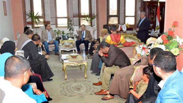 محافظ بني سويف يستقبل أسر حادثة بالوعة الصرف الصحي ببني سليمان