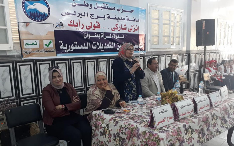 وفى السياق نظمت أمانة مدينة برج البرلس ندوة للمرأة بحضور الدكتورة هالة العجمى والدكتورة فريدة عبده أمينة الحزب بمطوبس ومحمد مطاوع أبو صالح امين الحزب بالمدينة ومحمد محجوب رئيس مدينة البرلس وتم شرح التعديلات الدستورية واهمية تخصيص نسبة للمرأة فى التعديلات باعتبارها شريكا