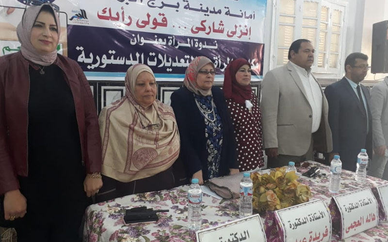 رئيسيا فى المجتمع ودورها البارز فى كافة المجالات بالإضافة إلى مساندتها المستمرة للدولة فى مواجهة التحديات التى تواجهها لافتين الى أهمية مشاركة المرأة بكثافة فى الاستفتاء المقبل لتأكيد احقيتها فى زيادة نسبة تواجدها فى البرلمان.