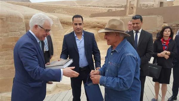 "حواس" يبوح لوزير خارجية بولندا بأسرار أبوالهول.. صور