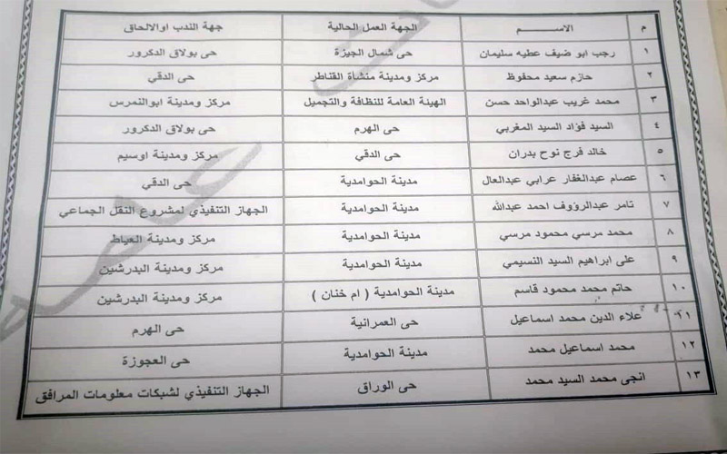 الجيزة تصدر حركة ندب وإلحاق لــ 33 موظفًا بالأحياء والمراكز والمدن
