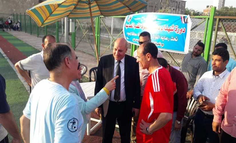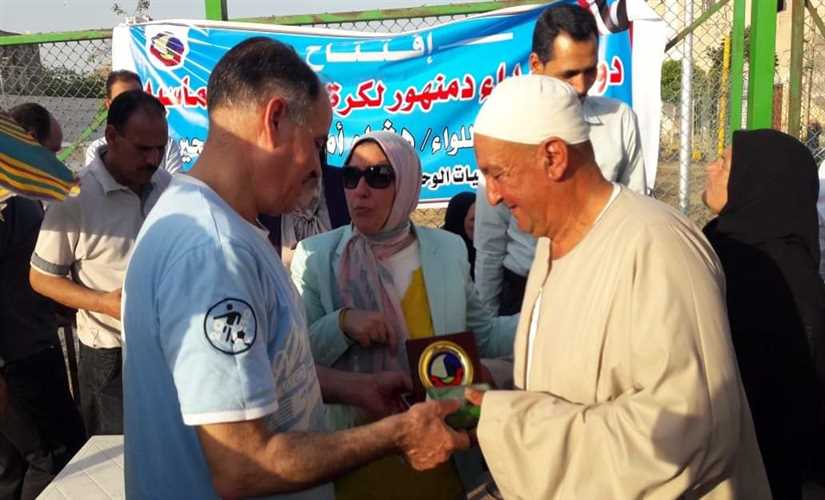 و آناب محافظ البحيرة ، السكرتير العام عبد الرحمن الشهاوى ورئيس مدينة دمنهور محمد خميس بإفتتاح دورة شهداء دمنهور للكرة الخماسية التى تقام لأول مرة بدمنهور.