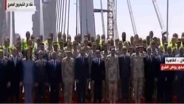 كما التقط الرئيس السيسي الصور التذكارية مع جميع الحضور وكبار رجال الدولة فوق كوبري "تحيا مصر".