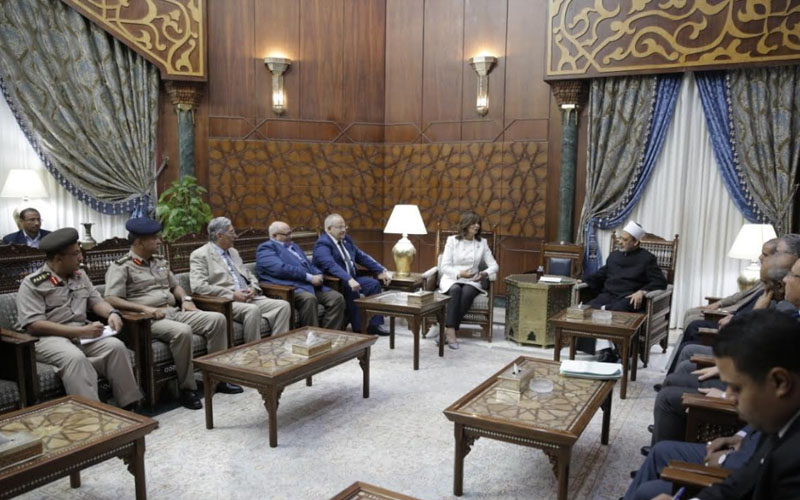 استقبل الإمام الأكبر الدكتور أحمد الطيب، شيخ الأزهر الشريف، اليوم الإثنين الدكتورة نبيلة مكرم وزيرة الهجرة وشؤون المصريين بالخارج بحضور عدد من رؤساء وممثلي الجامعات المصرية، لمناقشة تفعيل مبادرة "مصر بداية الطريق"