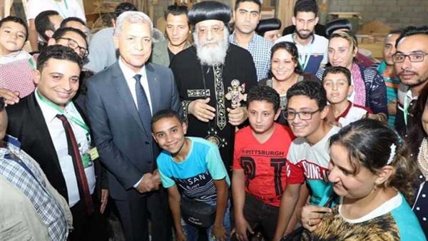 أطفال وشباب المنوفية يلتقطون الصور التذكارية مع البابا تواضروس الثاني