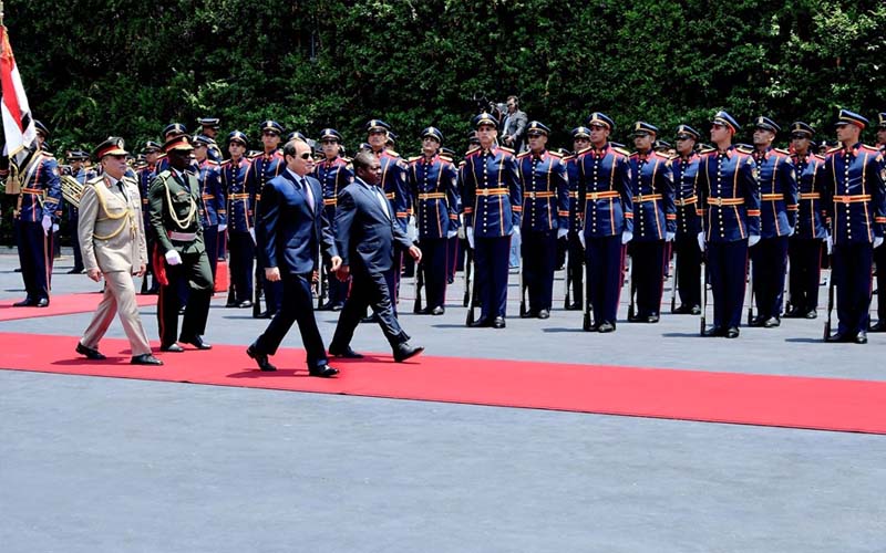 نشرت الصفحة الرسمية للمتحدث الرسمي باسم رئاسة الجمهورية، السفير بسام راضي، بموقع التواصل الاجتماعي "فيس بوك"، صورًا لاستقبال عبد الفتاح السيسي، بقصر الاتحادية اليوم، نظيره الموزمبيقي "فيليب نيوسي"، الذي يقوم بزيارة رسمية لمصر، حيث أقيمت مراسم الاستقبال الرسمي، وتم استعراض حرس الشرف وعزف السلامين الوطنيين.