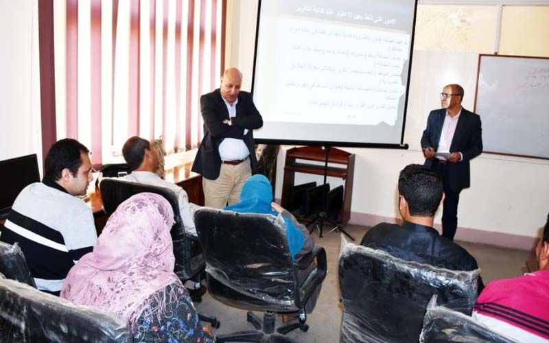 وألقى المحاضر الضوء على أنواع وأحجام وفوائد التقارير ومراحل إعدادها ومقومات التقرير الجيد وأهميته في إعطاء فكرة واضحة ومبسّطة عن القضية أو الموضوع قيد البحث كما يعدّ بمثابة وسيلة هامة تساعد في التقييم والدراسة والتخطيط للمستقبل البعيد.
