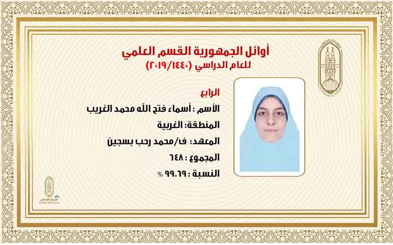 وتنشر بوابة روزاليوسف أوائل الثانوية الأزهرية بالقسم الأدبي.