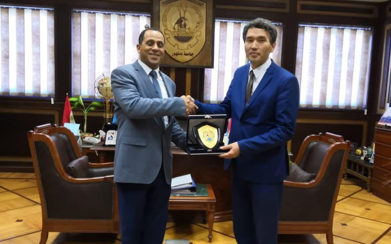 استقبل الدكتور عبيد صالح، رئيس جامعة دمنهور، ايلمان جولداسوف المستشار الثقافي لسفارة كازاخستان و باجلان ناربك مساعد المستشار الإعلامي للسفارة والوفد المرافق لهم، بحضور نواب رئيس الجامعة وعمداء الكليات بمقر إدارة الجامعة.