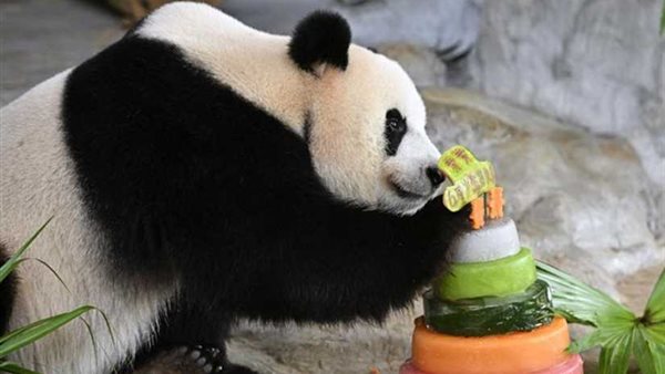 وقام موظفو الحديقة بتجهيز كعكة من ست طبقات من مكعبات الثلج المزينة بالجزر وأوراق البامبو، وسط حضور عدد كبير من محبي الباندا العملاقة.
