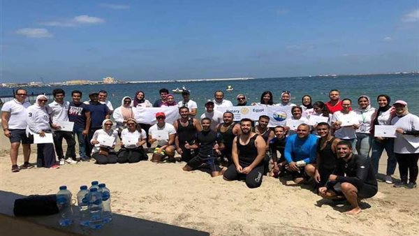 بالصور.. تنظيف شاطئ وقاع بحر الإسكندرية