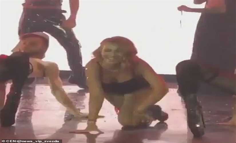 وكانت قد أظهرت لقطات تم تسريبها إلى وسائل التواصل الاجتماعي كسينيا وهي تخلع ملابسها على المسرح وتزحف على طول المسرح.