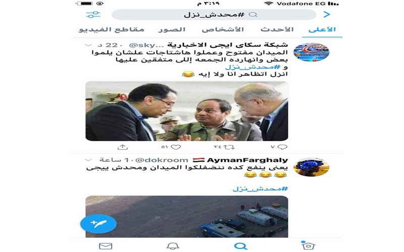 وبعد فشل المحرضين، خرجت النكات المصرية تواجههم على موقع تويتر ومواقع التواصل الاجتماعي، عبر هاشتاج #محدش_نزل، للسخرية ممن حاولت لجانهم الإلكترونية إيهام رواد مواقع التواصل الاجتماعي بانهم كثرة، وما هي الا لجان إلكترونية لا أساس لها على أرض الواقع، فها هي الحياة تسير بشكلها الطبيعي، ولم يتظاهر بها أحد.