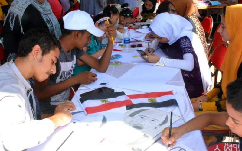 كما تم تنظيم معرض للرسم ، وابدع الشباب والفتيات والتلاميذ فى رسم مشاهد لحرب أكتوبر المجيدة ورفع العلم ، ورسومات بالفحم للرئيس السيسي والرئيس الراحل محمد أنور السادات والرموز الوطنية والعسكرية.