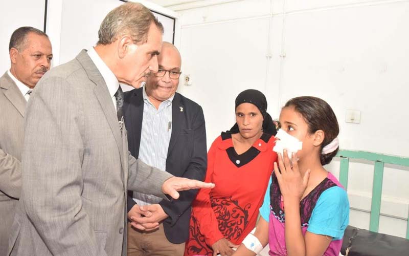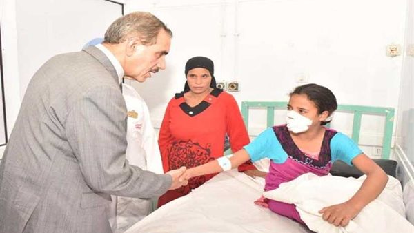 محافظ أسيوط يزور الطفلة "شيماء" بالمستشفى الجامعي عقب إجراء عمليات جراحية بعد أن عقرها كلب في الوجه