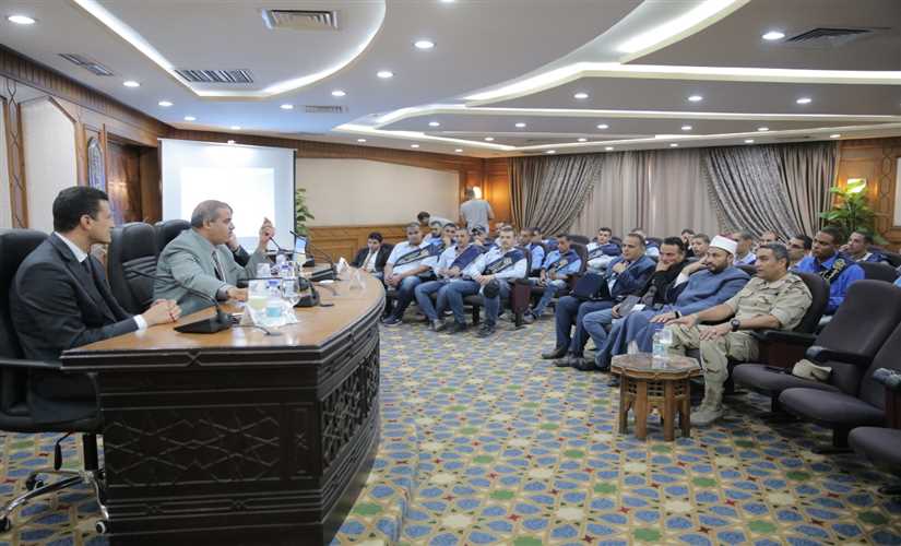 عقد مركز الأزهر العالمي للفتوى الإلكترونية، اليوم الاثنين، بمشيخة الأزهر الشريف، محاضرة علمية وتوعوية بعنوان "معالم المنهج الأزهري"، لطلاب من جامعة الأزهر، في إطار برنامج التعاون بين مؤسسة الأزهر الشريف ووزارة الدفاع، لتنمية روح الولاء والانتماء للوطن، بحضور الدكتور محمد المحرصاوي، رئيس جامعة الأزهر، والدكتور محمد الجبة، الأستاذ بجامعة الأزهر، والأستاذ أسامة الحديدي، مدير مركز الأزهر العالمي للفتوى الإلكترونية.