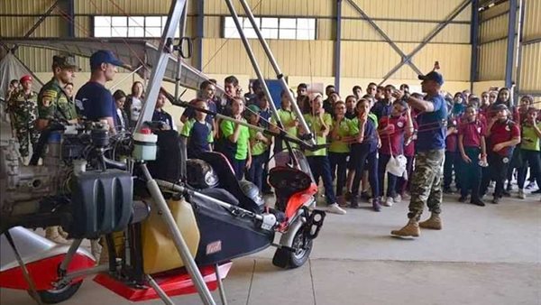 كما شاهد الطلاب تجربة حية لإنزال حي بالمظلات لعدد من المقاتلين، كما تفقدوا عددا من الطائرات والمعدات.