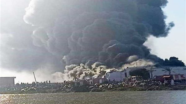 تصاعد الأدخنة من حريق مصنع كاوتش بالمنزلة في الدقهلية