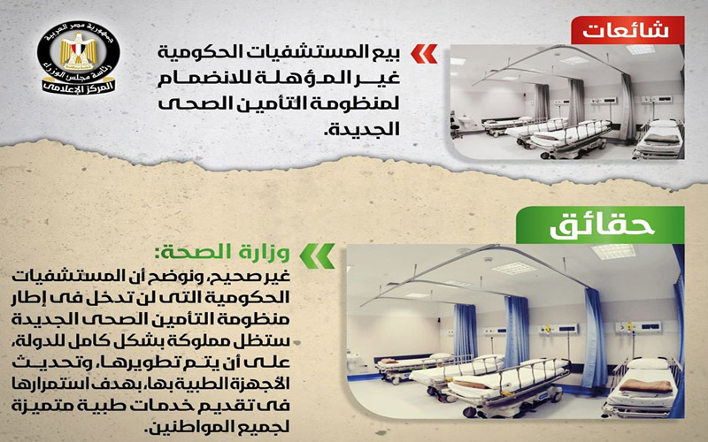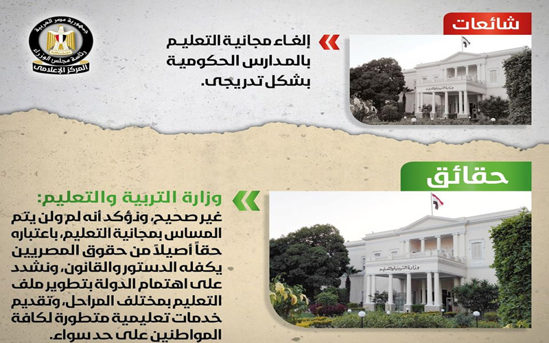 ومن أبرز الشائعات التي تم الرد عليها اليوم، ادعاء ان الدولة ستلغي مجانية التعليم تدريجيًا، وهو ما نفاه مجلس الوزراء بشكل قاطع، وأخرى تتحدث عن بيع المستشفيات الحكومية، فإليكم الشائعة والحقيقية بالتفاصيل: