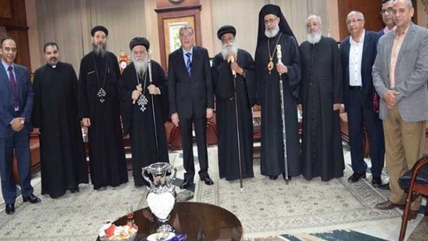 جاء ذلك خلال استقبال المحافظ وفدا كنسيا، ضم عددا من القساوسة والمطارنة بمراكز المحافظة، حيث هنأ الوفد المحافظ بتوليه مهام عمله في محافظة المنيا، معربين عن أملهم في أن يلهمه الله التوفيق والسداد، وأن يحقق آمال وطموحات أهالي المنيا، وبحضور الدكتور محمد محمود أبو زيد، نائب المحافظ، وضم الوفد الأنبا ديمتريوس أسقف مطرانية ملوي وأنصنا والأشمونين، والأنبا بطرس فهيم، مطران الكاثوليك بالمنيا، والأنبا جورجيوس أسقف مطاي.