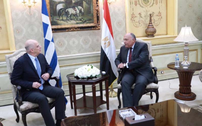 وواصل الوزير شكري اتصالاته المكثفة اليوم حول الوضع في ليبيا والبحر المتوسط حيث استقبل وزير خارجية اليونان "نيكوس دندياس" الذي قام بزيارة سريعة الى القاهرة قادماً من ليبيا. وأوضح حافظ أنه تم - خلال اللقاء - تبادل التقديرات حول آخر التطورات في ملف الأزمة الليبية والتأكيد على ضرورة التوصل إلى تسوية شاملة بُغية استعادة الأمن والاستقرار، وذلك عبر تضافر الجهود الدولية واستكمال التحضيرات الخاصة بمسار برلين.