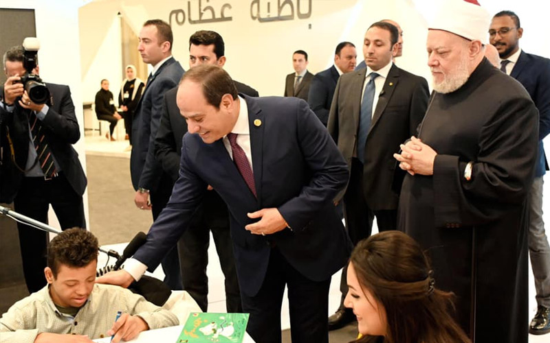 قام الرئيس عبد الفتاح السيسي بتفقد معرض القافلة الطبية للكشف على ذوي الإعاقة والاطلاع على نشاط القوافل في هذا الإطار ،كما تفقد سيادته معرض المرأة المعيلة للأطفال ذوي الهمم في إطار احتفالية قادرون باختلاف لأصحاب الهمم وذوي الاختلاف الذي أقيم اليوم بقاعة المنارة.