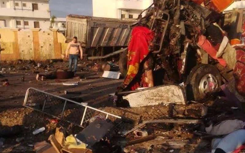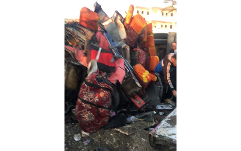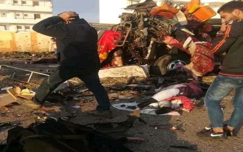 لقي 19 عاملا مصرعهم وأصيب 16 آخرون جراء انقلاب حافلة نقل عمال تابعة لأحد مصانع الملابس الجاهزة بعد أن اصطدمت بها سيارة نقل (تريلا) أمام نادى الأبطال على طريق دمياط غرب/ بورسعيد.