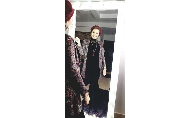 - يمكنك ارتداء توب باللون البيرجاندي بأكمام واسعة في نهايتها ومفتوح على شكل سبعة مع ارتداء توب تل تحته على بنطلون بأرجل واسعة أيضا مع تربون باللون الأسود وإكسسوارات باللون الفضي وحذاء وشنطة وجاكت باللون الأسود أيضا.