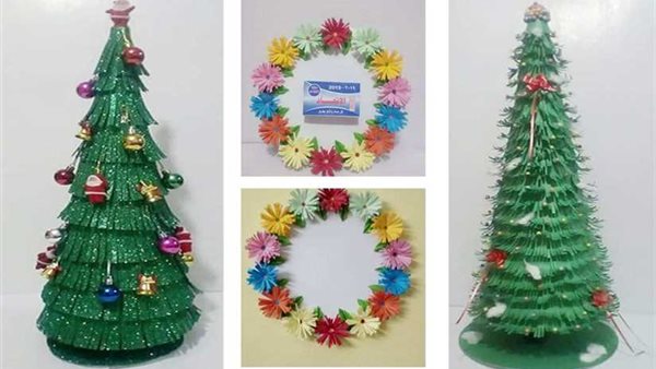يحتفل المصريون اليوم بليلة رأس السنة واستقبال عام ميلادي جديد، وتعد شجرة الكريسماس أكثر ما تميز الاحتفالات بالكريسماس، وفي الوقت الذي يقبل فيه البعض على شراء الشجرة جاهزة، يقوم آخرون بتصميمها هاند ميد في المنزل بخامات مختلفة، وقد حرصت مصممة الورود ومكملات الديكور دعاء لاشين بتصميم شجرة عيد الميلاد من الفوم باللون الأخضر الجذاب وزينتها بالكور والنجوم الملونة وبابا نويل وغيرها من الأشكال المبهجة.