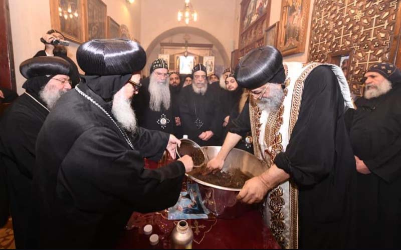 ووضع قداسته الحنوط والأطياب على الأنبوبة التي تحوي رفات القديس. كما صلى صلوات العشية.